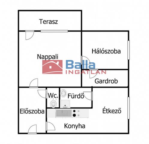 60 m² terület 2 szoba