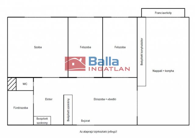 Egyéb tulajdonságok: tehermentes, akadálymentes, erkély (1 m²), külön étkező, külön wc, lift (1 db), utcai parkolás