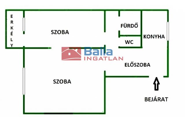 57 m² terület 2 szoba
