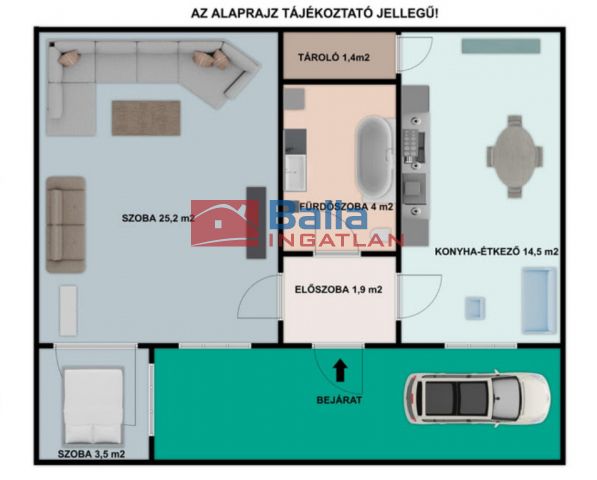 54 m² terület 2 szoba